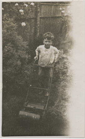 The image shown on the right is from an often-overlooked series in the archive comprising photographic portraits of Geoffrey Hill (BC MS 20c Hill/8/3), and including professional and amateur photographs taken throughout his life. This childhood photograph, presumably taken in the garden of his parents’ house in Bromsgrove, is particularly evocative as an individual item. When seen as part of the larger archive, of a lifetime’s range of portraits, or notebooks with drafts of poems drawing on his childhood experience, its context serves as evidence of a life and work.